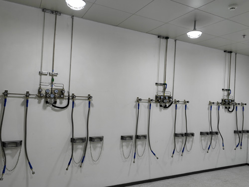 7.氣瓶間內存儲的氣瓶進行帶防倒鏈的氣瓶金屬安裝支架上固定不動,氣瓶金屬安裝支架上更加堅固抗用、漂亮美觀。氣瓶金屬安裝支架上進行鈦鎂鋁合金材料設計而成。